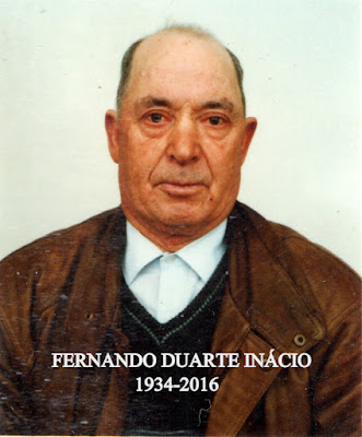 FALECIMENTO DO SR. FERNANDO DUARTE INÁCIO 82 ANOS. NATURAL E RESIDENTE NA PEREIRA. ENCONTRA-SE NA CAPELA MORTUÁRIA DA PEREIRA E O SEU FUNERAL REALIZA-SE AMANHÃ QUINTA-FEIRA ÁS 10H30 NA IGREJA DA PEREIRA. FICARÁ SEPULTADO NO CEMITÉRIO DA PEREIRA-PINHEIRO.
